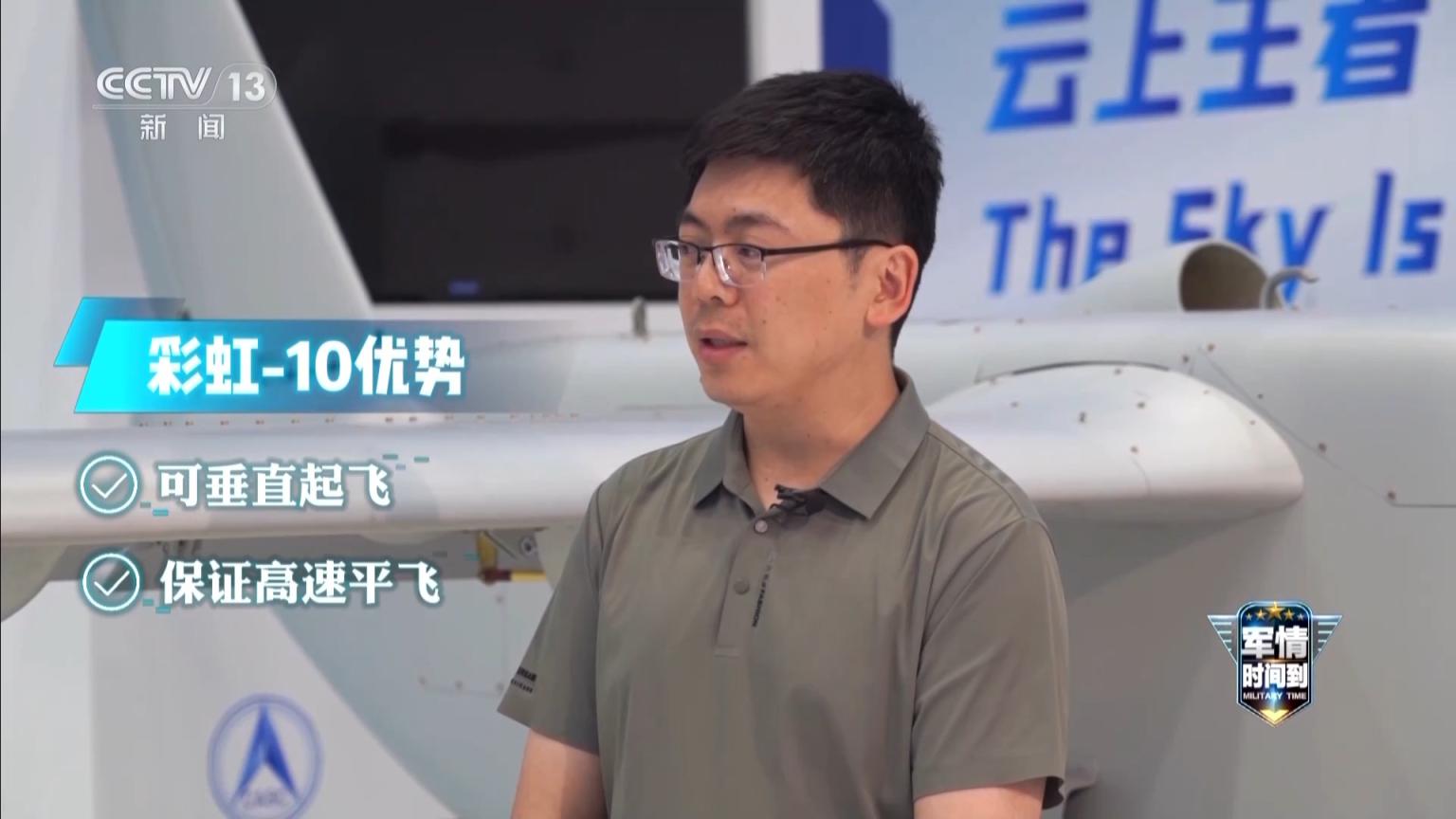 主持人 劳春燕:彩虹-10是一款倾转旋翼无人机,所以这个长相有点奇怪。你看这个就是它的旋翼,它有什么特点?